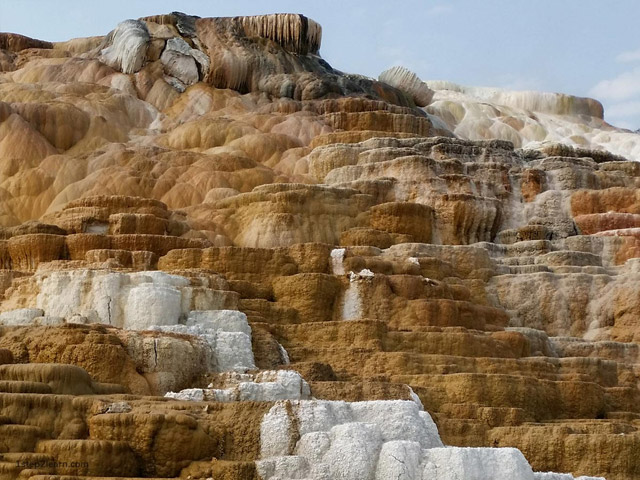 As hot water rises from deep within the Earth, it carries minerals to the surface, forming intricate layers of calcium carbonate that cascade down the terraces.