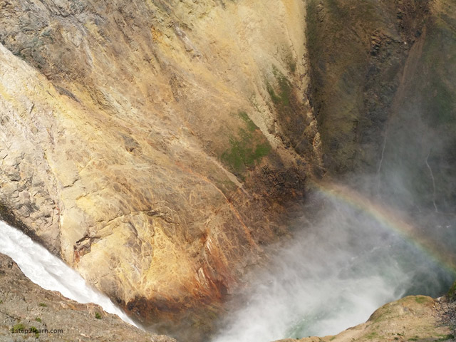 Descending Uncle Tom's Trail, I was awe-struck as the powerful waterfall created a magnificent rainbow that stretched across the canyon, a dazzling display of nature's beauty that left me speechless and filled my heart with wonder.