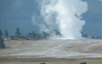 Finding a comfortable spot among the crowd, you join the collective anticipation, eagerly waiting for Old Faithful's performance.