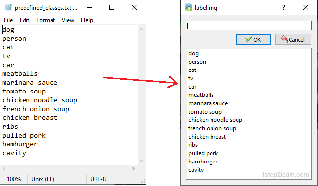 Step 4: Select class (label) from the list (predefined_classes.txt).