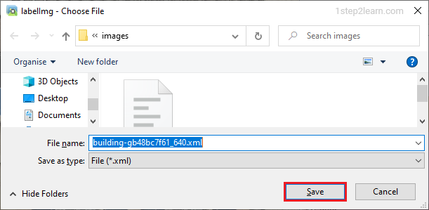 For example, if your image is named 'building.jpg', the annotation file will be named 'building.xml'. It's important to save your annotations regularly so that you don't lose any work in case of a power outage or unexpected interruption.
