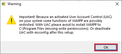 This message advises you to avoid installing the program in the "Program Files" directory. So, when you see this warning message, just click on OK to acknowledge it and choose a different location for the installation.