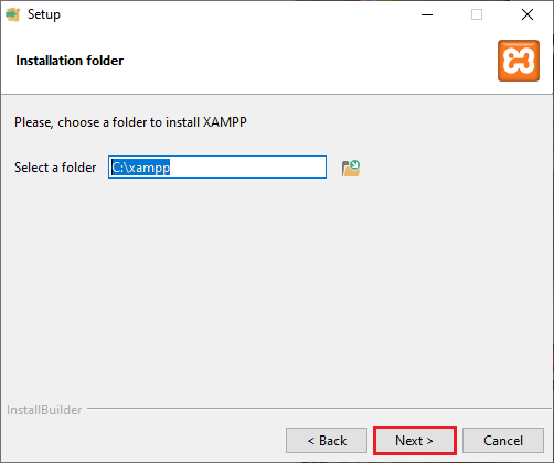 Remember how we mentioned not installing XAMPP in the "Program Files" directory? We'll select a location that is easier to access and manage. Later on, we'll need to copy the WordPress files to that specific location.