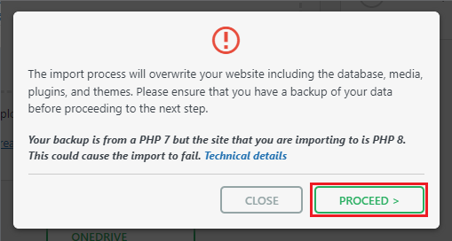 After selecting the file, you may see an alert. Make sure to read it carefully. If prompted, click on "Proceed" to continue with the import process.