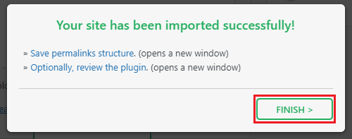After clicking "Finish," refresh the website. You will then need to log in again using your backup user credentials.
