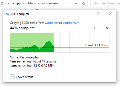 - Copy the WordPress files to the "xampp/htdocs/yourdomain" directory.