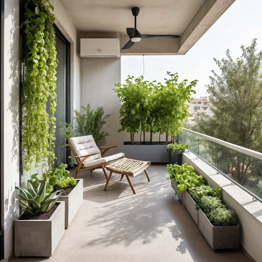 ראשית, גינת הירק יוצרת סביבה כל כך נעימה וידידותית במרפסת. זה ממש יפה לראות את הצמחים הירוקים והפריחה על העצים.