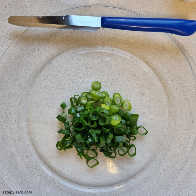 - שוטפים בצל ירוק אחד גדול או שניים קטנים וקוצצים (התוספת השנייה).