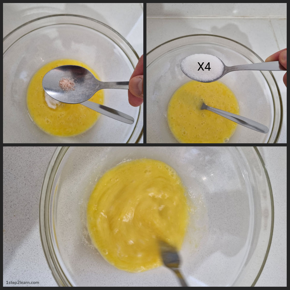 הוסף לתערובת 4 כפות סוכר לבן וערבב, לאחר מכן פזר חצי כפית מלח וערבב.